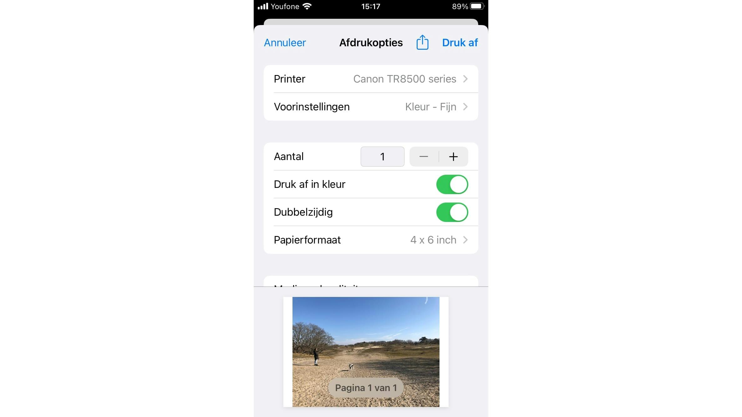 Zodra een fotoprinter met het thuisnetwerk is verbonden, start je de afdruktaken eenvoudig vanaf smartphones en tablets. Controleer in de specificaties of het beoogde product de protocollen Apple AirPrint en Mopria ondersteunt om rechtstreeks vanuit de mobiele besturingssystemen iOS (iPhone en iPad) en Android af te kunnen drukken. Open maar eens een afbeelding in je fotobibliotheek en kies in het menu Druk af of Afdrukken en selecteer vervolgens de juiste printer. Verder kun je ook nog allerlei zaken instellen, zoals het papierformaat, de afdrukkwaliteit en het aantal exemplaren. Bij aanwezigheid van meerdere lades geef je optioneel ook aan welk papier je wilt gebruiken.