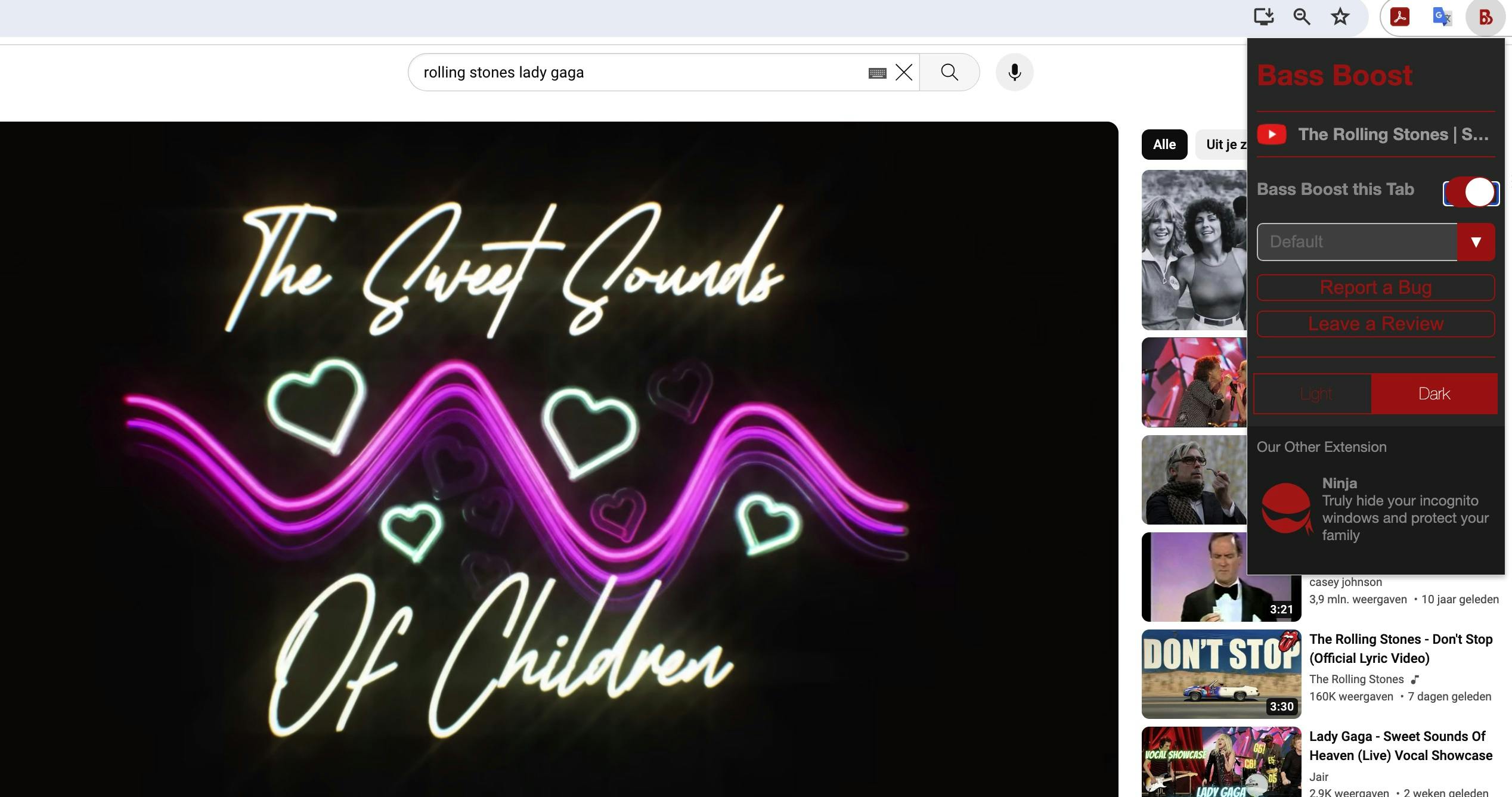 Bass Boost geeft de video’s en songs die je via het web beluistert veel meer diepgang. Je moet uiteraard goede luidsprekers of een koptelefoon hebben om de boost tot in je darmen te voelen. Bij de reviews in de Chrome Web Store lezen we de reactie van een gebruiker die niet veel verschil merkte … Nou, wij wel hoor, enorm verschil zelfs. Je moet natuurlijk wel het schakelaartje van Bass Boost aanzetten of je drukt op de spatiebalk om deze extensie te activeren. Wij zijn in ieder geval fan!