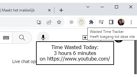 Een mooie afsluiter in het kader van tijdverlies en nutteloosheid is Wasted Time Tracker, een tool die meet hoeveel tijd je iedere dag, iedere week en iedere maand spendeert aan websites die je afleiden. De Wasted Time Tracker vertelt hoelang je op onproductieve websites rondhangt. Eerst moet je zelf de webadressen ingeven van de sites waarvan je weet dat je er (te) veel tijd aan verspilt. De extensie werkt op de achtergrond en wanneer je met de muisaanwijzer over de knop gaat, krijg je de confronterende timer te zien.