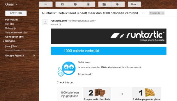 Tip 04 Na het bereiken van een doel stuurt Runtastic je een e-mail met het nieuws.