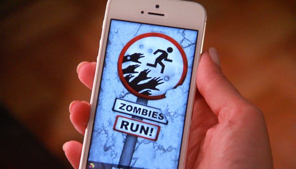 De app Zombies, Run! is een fitness-app met een sportelement. Het is namelijk een game waarbij je moet wegrennen voor zombies. Door te sporten ontrafel je een spannend verhaal en verzamel je virtuele wapens en medicijnen. Met het winnen van onderdelen bouw je jouw basis uit. Met elke missie ren je weg voor zombies, wat feitelijk zorgt voor een vrij intensieve en steeds andere intervaltraining.