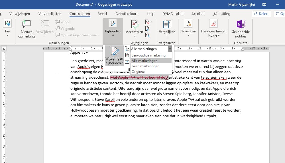 Met Alle markeringen zie je duidelijk wat er gewijzigd is in een document