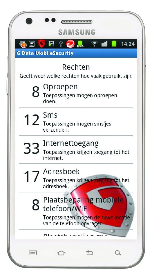 De app van G Data richt zich vooral op antivirus. U kunt de app gratis installeren en uitproberen, maar zodra u updates van virusdefinities wilt ontvangen, moet u een abonnement afsluiten. Dat is overigens niet nodig wanneer u G Data al op de pc gebruikt: dan hoeft u geen extra licentieovereenkomst af te sluiten. Handig is dat u, ook met de gratis versie, voor belangrijke rechten kunt zien hoeveel apps (en welke apps) u gemachtigd hebt die functie te gebruiken. Denk aan rechten als het opzetten van een telefoongesprek, raadplegen van internet of versturen van een bericht. Die rechten kunt u niet wijzigen, maar u kunt wel apps verwijderen als u ze niet vertrouwt.