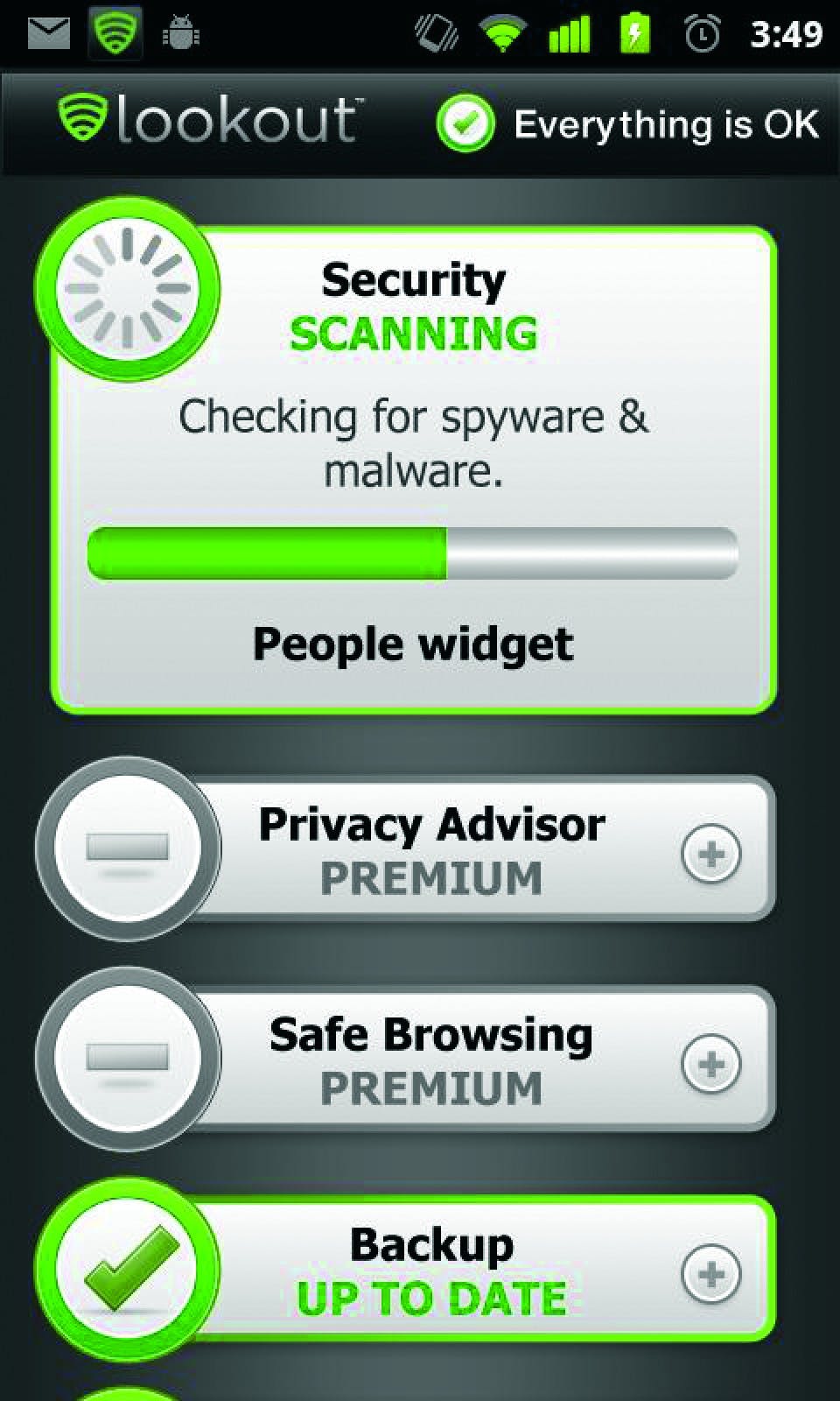 Lookout Mobile Security is volgens het bedrijf de leidende beveiligingsoplossing voor Android en aan het aantal downloads te zien, kan dat goed kloppen: meer dan tien miljoen mensen hebben het al geïnstalleerd. Wat mee zal spelen is dat antivirus gratis is – u zit dus niet aan een abonnement vast. U kunt wel een abonnement afsluiten voor Premium-functies, die overigens op het gebied van antivirus niets toevoegen. Wel krijgt u daarmee uitgebreidere antidiefstalfuncties die u via de browser kunt uitvoeren. Traceren van uw toestel en een alarm activeren zijn gratis, maar met Premium kunt u een toestel ook nog blokkeren en wissen. U kunt bovendien uitgebreidere backups maken. De gratis versie maakt alleen een backup van uw contacten, de volledige versie ook van foto’s en belgeschiedenis. Ook kunt u veiliger browsen en, net als bij de oplossing van G Data, informatie opvragen over de machtigingen die u aan apps hebt gegeven.