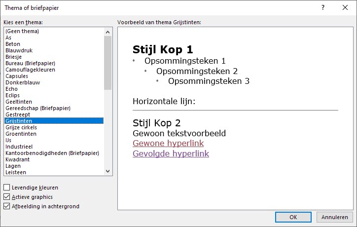 Je e-mailberichten aantrekkelijker maken lijkt ons een mooi begin. Open Outlook, ga naar het tabblad Start en kies in bij Nieuw de optie Nieuwe items / E-mailbericht met / Met briefpapier. Je kunt nu briefpapier kiezen of een thema selecteren en dit met OK bevestigen. Maak het niet te bond, er zitten nogal wat ouderwets ogende thema’s in dit pakket. Wil je dit thema voortaan instellen voor alle berichten, ga dan naar Bestand en kies Opties / E-mail. Bij Berichten in deze opmaak opstellen selecteer je HTML, waarna je Briefpapier en lettertypen selecteert. Vervolgens open je het tabblad Persoonlijk e-mailpapier, druk je op de knop Thema en kies je een passende opmaak uit.