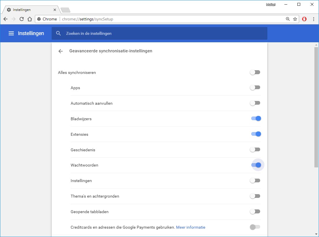 Wanneer je Chrome op je pc gebruikt, is het natuurlijk handig als je op andere systemen ook toegang hebt tot diezelfde bladwijzers, surfgeschiedenis, extensies en wachtwoorden. Geen probleem, want Chrome stelt je in staat om deze gegevens met een laptop, tablet of smartphone te synchroniseren. Zorg ervoor dat je een account hebt bij Google en dat je ingelogd bent. De browser schakelt vervolgens automatisch synchronisatie in. Heb je het ooit uitgezet of staat de functie niet aan, dan kun je het eenvoudig aanzetten door op je pc rechtsboven op de knop Google Chrome aanpassen en beheren (drie puntjes) te klikken en te kiezen voor Instellingen. Wil je zelf bepalen welke gegevens je met andere systemen deelt? Klik onder het e-mailadres op Synchronisatie en geef met de schuifknop achter iedere instelling aan of je hiervoor synchronisatie wilt instellen. Zodra je Chrome op een ander apparaat installeert, zijn de gesynchroniseerde gegevens automatisch beschikbaar. Voorwaarde is wel dat je natuurlijk met hetzelfde Google-account bent ingelogd.