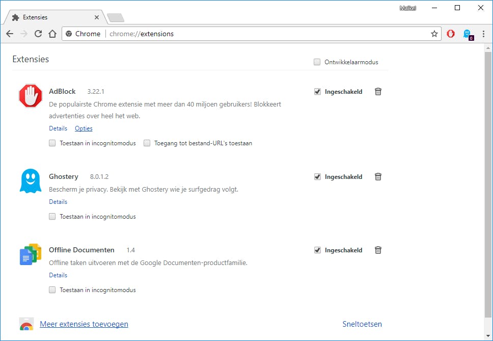 Experimenteren in Chrome