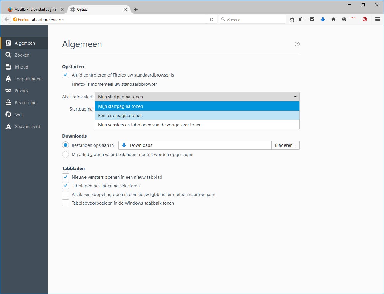 Wanneer je link opent in een nieuw tabblad, moet dat tabblad dan direct actief worden of juist op de achtergrond geladen worden? En openen nieuwe ‘vensters’ in een nieuw venster of in een tabblad? Afhankelijk van je browser kun je deze instellingen zelf aanpassen. In Firefox vind je deze opties in het Menu / Opties / Algemeen. Helemaal onderin zie je het kopje Tabbladen, waar je kunt bepalen hoe tabbladen binnen Firefox zich gedragen. Opmerkelijk genoeg biedt Chrome geen opties voor het aanpassen van je tabbladen, daarvoor moet je op zoek naar extensies (zoals Custom New Tab of Force Background Tab). Gebruik je Edge? Dan kun je het gedrag van tabbladen momenteel helemaal niet aanpassen, ook niet met een extensie. In Internet Explorer kan dit wel, via Menu / Internetopties / Algemeen. Wanneer je daar klikt op de knop Tabbladen kun je de eigenschappen van de tabbladen behoorlijk uitgebreid aanpassen (erg jammer dat dat in Edge (vooralsnog?) verloren is gegaan).