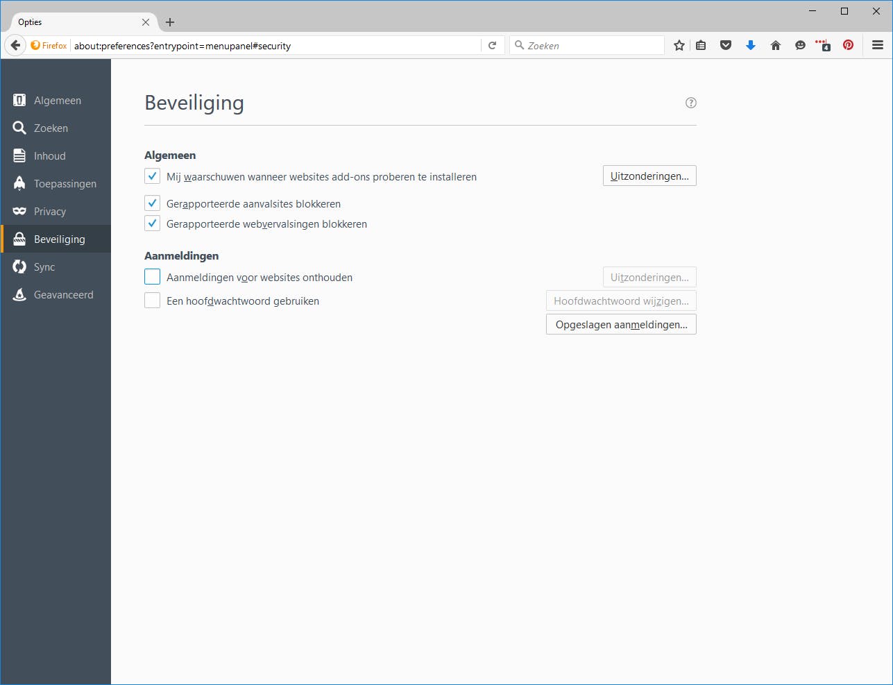 Of je nu ergens inlogt, ergens iets koopt of je ergens voor probeert aan te melden: er worden regelmatig gegevens van je gevraagd. Het handige van moderne browsers is dat ze deze gegevens voor je kunnen onthouden en automatisch voor je kunnen invullen de volgende keer dat ze nodig zijn. Dat is natuurlijk prachtig, zeker gezien het feit dat die gegevens gesynchroniseerd worden, maar misschien vind je dat wel helemaal niet prettig qua veiligheid? In dat geval kun je vaak aangeven dat je dit soort gegevens liever niet automatisch aangevuld ziet. In Firefox doe je dat door in het menu te klikken op Opties en vervolgens op het tabblad Beveiliging. Je kunt daar aangeven of websites je automatisch mogen aanmelden of niet.