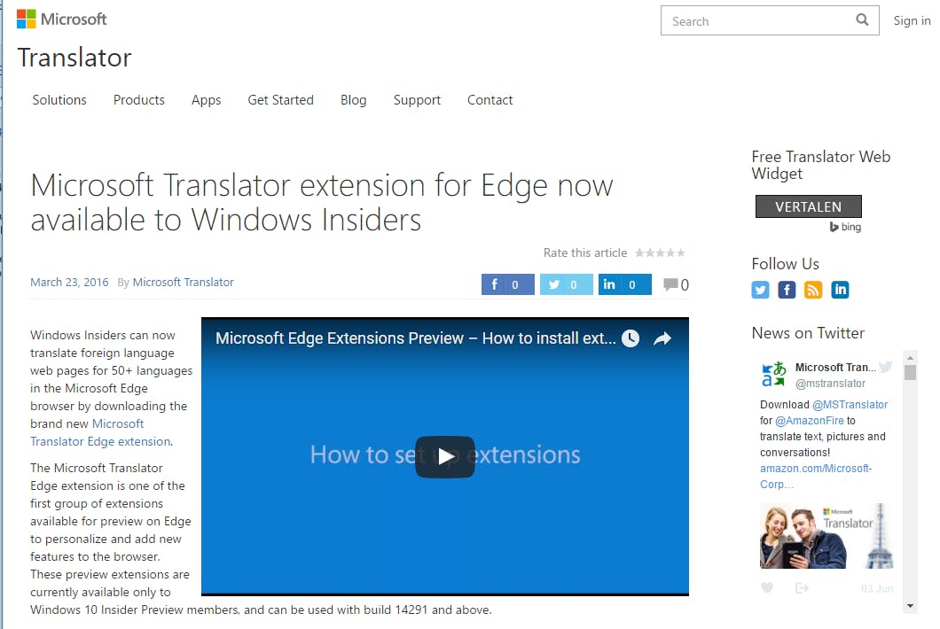 Op het moment van schrijven ondersteunt Edge alleen nog extensies wanneer je één van de preview builds (versies die nog niet helemaal gereed zijn) hebt geïnstalleerd. In de volgende stabiele versie van Edge zullen extensies voor iedereen beschikbaar zijn. Alvast een tip voor wanneer het zover is: met de extensie Microsoft Translator kun je websites in andere talen automatisch voor je laten vertalen naar het Nederlands (of andersom). We verwachten overigens geen extensies voor Edge die de werking van de software zélf heel erg aanpassen, omdat dit simpelweg één van die dingen is waar Microsoft zelf de controle over wil houden.