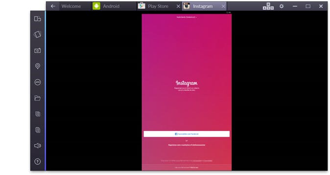 De app Instagram (of een andere app naar keuze) staat nu voor je klaar. Klik op Installeren om de app op je BlueStacks-systeem te installeren. Je ziet tot welke onderdelen de app allemaal toegang wil hebben. Klik op Accepteren om dit goed te keuren. Na installatie kun je op Openen klikken. Je ziet dat Instagram standaard in portretmodus wordt weergegeven en dat je daarom grote zwarte randen links en rechts ziet. Als een app zowel in portret- of landschapsmodus te gebruiken is, klik dan op het icoontje linksboven. Dit staat gelijk aan de beweging om een tablet of smartphone te wisselen van portret- naar landschapsmodus. Dus alsof je het apparaat draait. Als een app normaliter reageert op een schudbeweging, dan kun je dit simuleren door de tweede knop van boven, het icoontje onder de formaatwisseling.