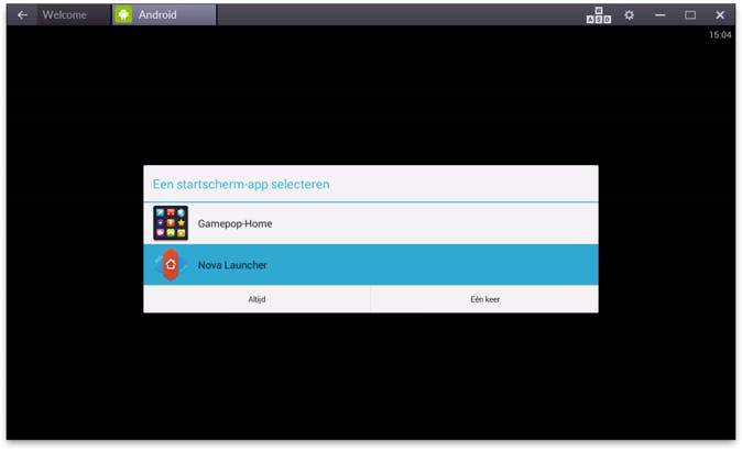 De interface van BlueStacks maakt het makkelijk om apps te installeren en te zoeken, maar als je liever een klassieke Android-ervaring wilt hebben, kun je een aparte app installeren. Nova Launcher is een goede keuze. Ga naar het scherm Welcome en zoek naar Nova Launcher. In het volgende scherm kies je voor Search Play for nova launcher. Installeer en open de app. Als je de volgende keer BlueStacks opent, krijg je de optie om Nova Launcher als standaard startscherm-app te selecteren. Kies voor Nova Launcher en klik op Altijd. Als je nu op de cirkel onderin klikt, zie je alle onderdelen die op je virtuele Android-machine zijn geïnstalleerd en niet alleen de onderdelen die BlueStacks je aanbiedt. Wil je Nova Launcher aan jouw eisen aanpassen, klik dan op Nova instellingen.