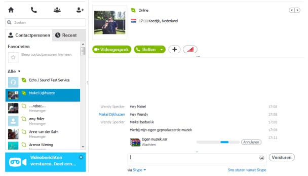 Overigens is dat alleen maar van belang wanneer je met het programma videogesprekken wil voeren. Kies voor Doorgaan en voeg eventueel een profielafbeelding toe. Klik daarna op Doorgaan / Skype starten. Klik in de contactenlijst op de persoon met wie je het bestand wil delen. Vanzelfsprekend heeft de ontvanger hiervoor ook Skype nodig. Er verschijnt een gespreksvenster op je scherm. Je sleept de bestanden vanuit Windows Verkenner naar het chatvenster.