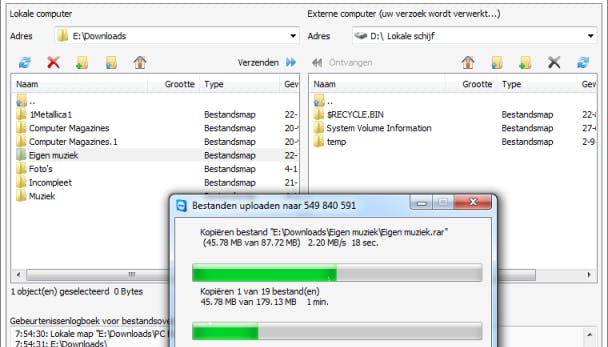 Klik ten slotte bovenaan op Verzenden om de overdracht te starten. Er verschijnt een nieuw venster in beeld waarin je de voortgang kunt volgen.