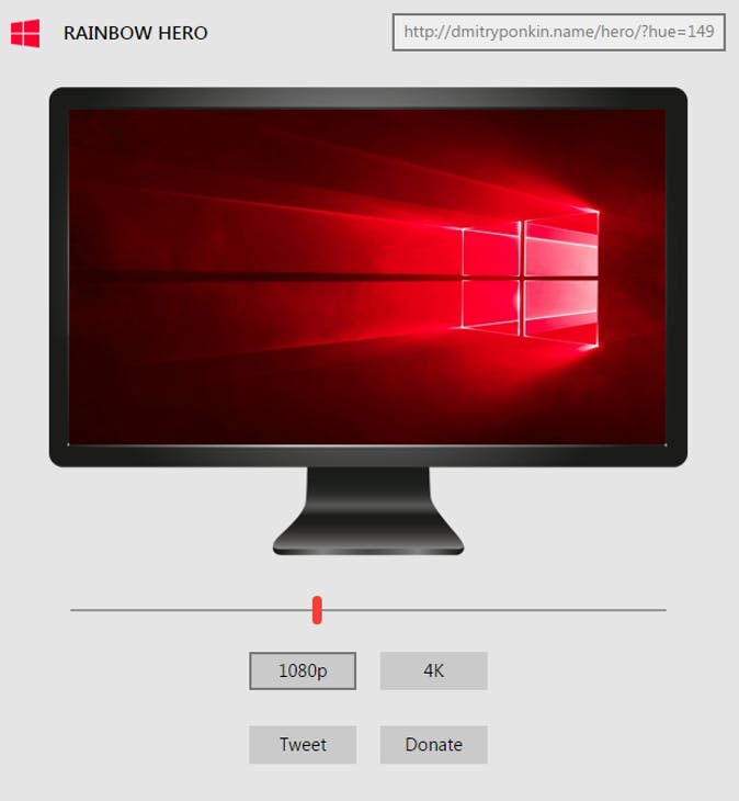 Je krijgt nu de Hero-achtergrond in miniatuur te zien en met een schuifknop stel je de gewenste kleur in. Vervolgens druk je de knop 1080p in, of 4K mocht je de gelukkige eigenaar van een 4K-monitor zijn. Het bijhorende jpg-bestand wordt nu gedownload, waarna je het instelt als achtergrond van je bureaublad door het bestand met de rechtermuisknop aan te klikken en Als bureaubladachtergrond gebruiken te selecteren.