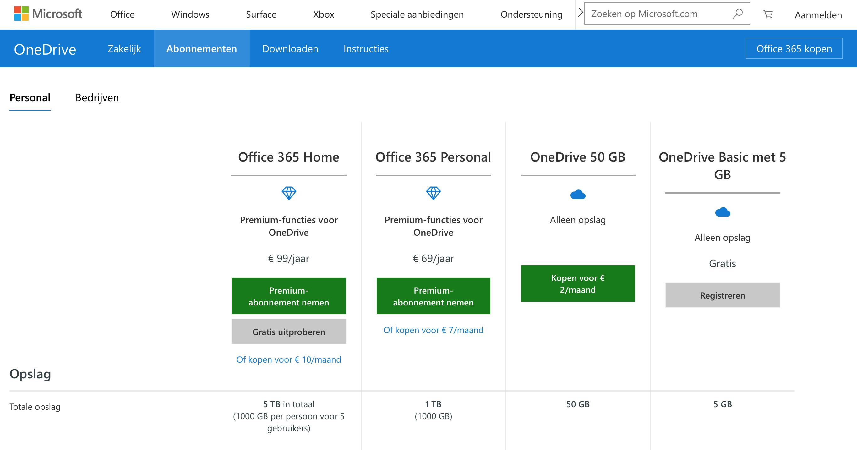 In Outlook mag de bijlage maximaal 20 megabyte groot zijn. Wil je een groter bestand versturen, dan moet je het eerst naar een clouddienst uploaden om vervolgens de koppeling naar dat bestand met de ander te delen. Uiteraard raadt Microsoft aan dit bij hun eigen dienst OneDrive te doen. Met een gratis OneDrive-account heb je maximaal 5 gigabyte gratis tot je beschikking, voor meer ruimte moet je een abonnement aanschaffen. Heb je een Office365-abonnement? Dan krijg je al minstens 1 terabyte van Microsoft.