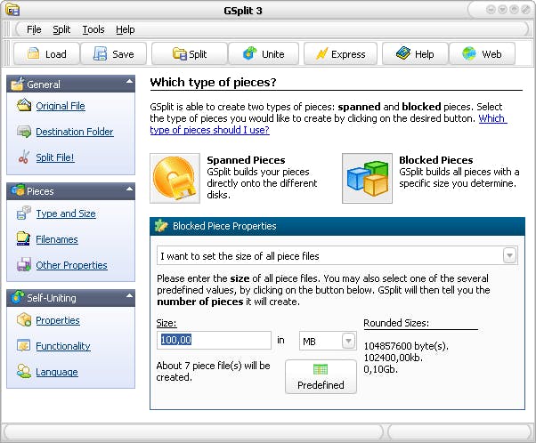 Een vergelijkbaar programma is GSplit. Dit programma heeft iets meer opties en kan bijvoorbeeld een bestand in even grote blokken hakken. Ook is de interface iets moderner en heb je wat meer mogelijkheden om je bestand op te splitsen. Ook hierbij moet de ontvanger het gratis programma op zijn of haar pc installeren om de delen weer samen te kunnen voegen.