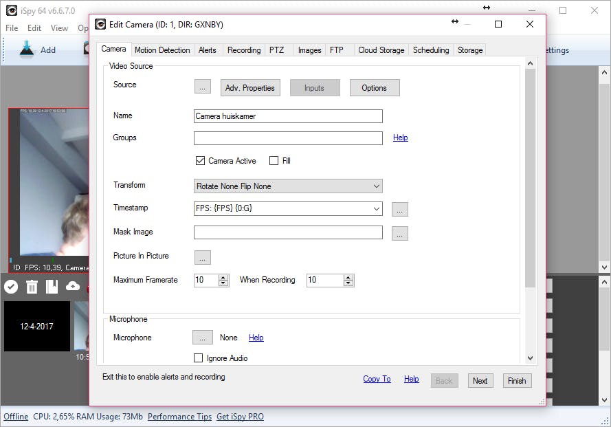 Het is natuurlijk niet helemaal hetzelfde als een IP-camera die je buiten aan de gevel hangt, maar een webcam kan prima dienen als beveiliggingssysteem in huis. Een mooi programma hiervoor is iSpy. Installeer het programma en klik na het starten op Add linksboven en vervolgens op Local camera om je webcam toe te voegen. Vervolgens klik je in de eigenschappen van de camera op Alerts en geef je aan wat er moet gebeuren als er beweging wordt gedetecteerd, bijvoorbeeld het sturen van een mail/sms.