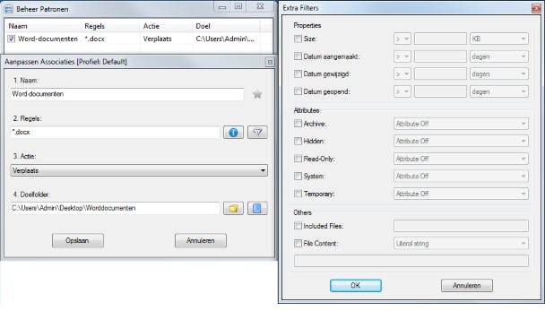 Het is bijvoorbeeld mogelijk het programma zo in te stellen dat docx-bestanden in de ene en xlsx-bestanden in de andere map belanden. DropIt kun je ook vanuit Windows Verkenner gebruiken. Het is bovendien mogelijk data automatisch te laten comprimeren, eventueel beveiligd met wachtwoord.