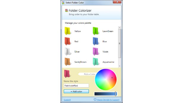 Die laat je standaard uit een 8-tal mapkleuren kiezen, maar via Colors komt een nagenoeg onbeperkt kleurenpalet ter beschikking. Meteen na je selectie krijgt het mappictogram de gevraagde kleur. Handig, want zo kun je bijvoorbeeld fotomappen groen inkleuren, documentmappen rood enzovoort. Overigens kun je via Restore Original Color op elk moment terug naar de oorspronkelijke kleur.