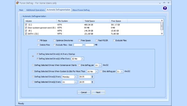 Er zijn best wel wat geavanceerde opties in Puran Defrag.
