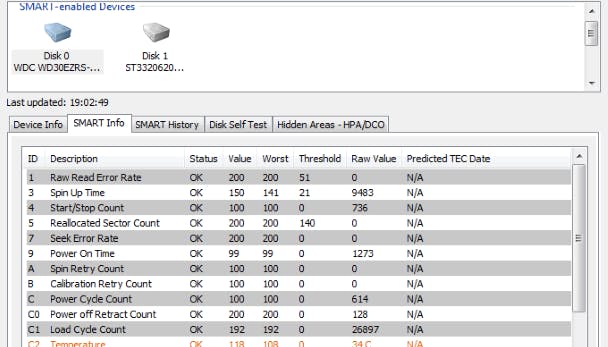 De klassieke harde schijf is een mechanisch onderdeel en is dus aan slijtage onderhevig. Houd dus de gezondheidsstatus van zo'n schijf in de gaten, of liever: laat dat doen. Bijvoorbeeld door PassMark DiskCheckup, dat dankbaar gebruikmaakt van de S.M.A.R.T-technologie (Self-Monitoring, Analysis, and Reporting Technology) die in ongeveer alle moderne schijven zit ingebouwd.