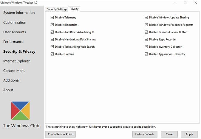 DoNotSpy10 helpt bij het uitschakelen van spionagefuncties die standaard aanwezig zijn in Windows 10.
