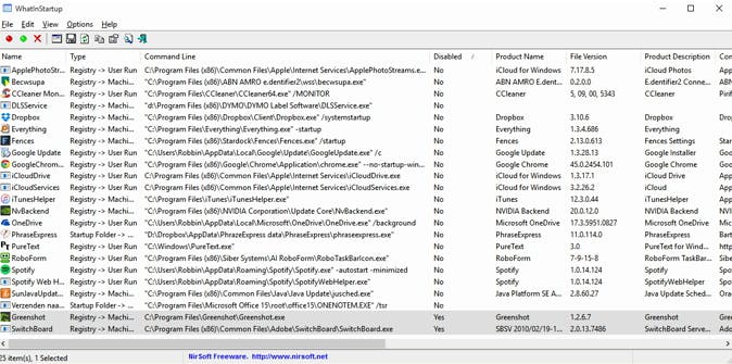 WhatInStartup laat zien welke programma's zichzelf automatisch starten zodra je je computer aanzet.