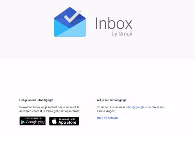 Inbox by Gmail werd in oktober gelanceerd. Het is als het ware een nieuwe interface voor je Gmail, met een geheel andere manier van werken. Inbox by Gmail werkt vooralsnog op uitnodiging, en er zit een gekke voorwaarde aan verbonden: je moet de app op mobiel of smartphone gebruiken. Er is ook een browserversie, maar om deze te kunnen gebruiken moet je wel eerst via een mobiel apparaat ingelogd hebben. De uitnodiging kun je aanvragen op www.google.nl/inbox. Meestal duurt het een dag of twee voor je een uitnodiging hebt gekregen om de app te gebruiken. Je kunt dan inloggen met je Gmail-account. Je kunt ook zelf een uitnodiging aanvragen door een e-mail te sturen naar inbox@google.com. Daarvoor moet je wel een Gmail-adres gebruiken. Lees ook: 20 superhandige Gmail-tips.