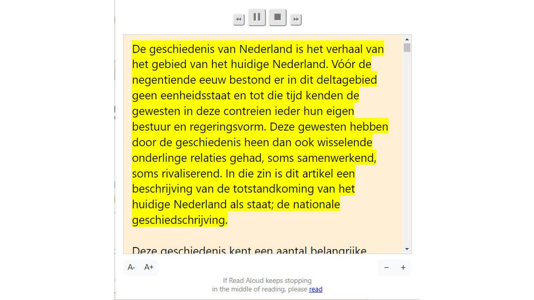 De naam van deze extensie is duidelijk: zodra je de Read Aloud-knop indrukt, begint een stem je actieve webpagina voor te lezen met behulp van tekst-naar-spraaktechnologie. De applicatie detecteert automatisch de juiste taal en ondersteunt tientallen talen, waaronder Nederlands. De meeste stemmen klinken levensecht en via het optievenster kun je bij de meeste talen uit diverse stemmen kiezen. Voor het Nederlands zijn er vijf beschikbaar (drie vrouwelijke, twee mannelijke). Je kunt de voorleessnelheid en toonhoogte aanpassen en de voorgelezen alinea wordt standaard gemarkeerd in een afzonderlijk venster. Met een muisklik kun je Read Aloud een ander tekstdeel laten voorlezen.