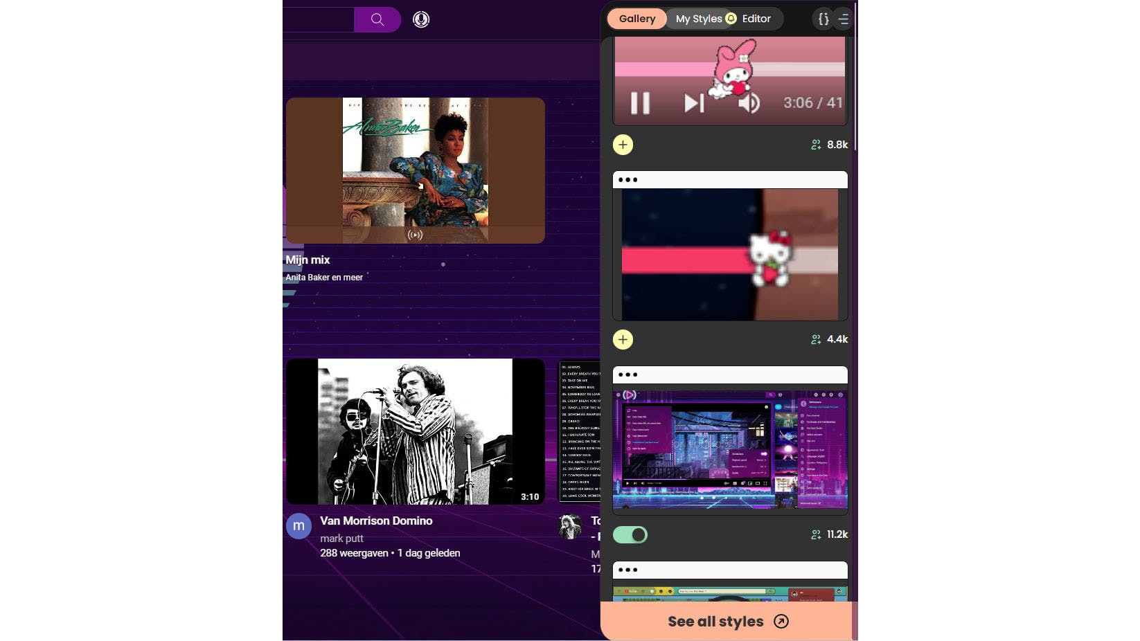 Ben je uitgekeken op de standaardweergaven van bekende sites? Met Stylish kun je deze snel een ander uiterlijk geven. Je kunt kiezen uit een indrukwekkend aantal stijlen (van medegebruikers) waardoor je niet alleen de achtergrond, maar bijvoorbeeld ook de lettertypen, het kleurenschema en zelfs animaties aanpast. Klik op See all styles om per site of trefwoord uit een nog uitgebreidere themabibliotheek te kiezen. Gevorderde gebruikers kunnen zelfs een volledig eigen schema ontwerpen met de ingebouwde CSS Editor.