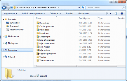 - De mappen Documenten, Afbeeldingen en Muziek en Films