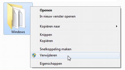 Alle belangrijke bestanden veiliggesteld en netjes opgeslagen? Dan is het tijd om ruimte vrij te maken. We gaan op onderzoek uit en controleren welke mappen en bestanden van het voormalige besturingssysteem kunnen worden verwijderd. Start de computer met het besturingssysteem dat u wilt behouden, in dit geval dus Windows Vista. Open Windows Verkenner, via Start, Alle programma's, Bureau-accessoires, Windows Verkenner. Hebt u het andere besturingssysteem, in dit geval Windows XP, indertijd als eerste besturingssysteem geïnstalleerd, dan zullen de bijbehorende bestanden op de C:\-schijf in de root zijn geplaatst. Neem daarom een kijkje op C:\ en ga op zoek naar de map Windows. Gevonden? Klik dan met rechts op de map en kies Verwijderen. U verwijdert hiermee dus het Windows XP-besturingssysteem.