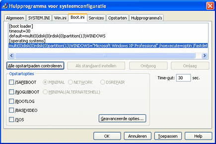 Met MSConfig kunt u een deel van Boot.ini bewerken.