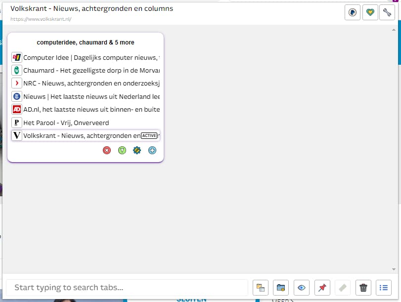De extensie Tab Manager Plus maakt het onder andere mogelijk om alle geopende tabbladen in één handig overzicht te krijgen. Tevens is het mogelijk om via dat overzicht handig te kunnen schakelen tussen de verschillende tabbladen. Verder kun je aangeven hoeveel tabbladen eenzelfde website geopend mag hebben; dat scheelt nogal wat dubbelingen.