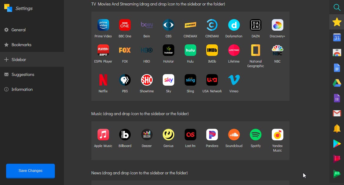 De extensie Sidebar wordt neergezet als een Apps and Bookmark Manager. Het komt erop neer dat je een supersnel op te roepen zijbalk krijgt, waarin je verticaal al je favorieten kunt neerzetten. En dat werkt een heel stuk beter dan de presentatie van de bladwijzers van Google Chrome zelf. Ook handig om de apps van Google te openen.