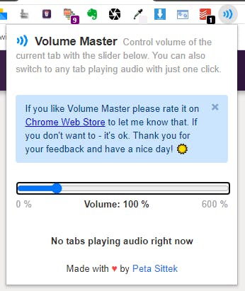 Hiermee kun je het volume controleren van de geluiden die een webpagina (het huidige tabblad) voortbrengt. Dat volume kun je terugbrengen naar 0 procent, maar ook opvoeren tot 600 procent. Extra handig is dat Volume Master je vertelt welke geopende tabbladen audio afspelen, daarmee kun je ook meteen supersnel schakelen.