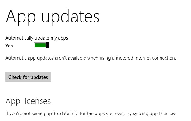 Met Windows 8 moest je naar de Windows Store gaan en je moderne apps handmatig updaten. Windows 8.1 doet al het werk voor je op de achtergrond - mits je de optie geactiveerd hebt. Open de Windows Store, open de Settings charm en selecteer App Updates. Hier moet je ervoor zorgen dat de instelling Automatically update my apps is ingeschakeld. Voilà!