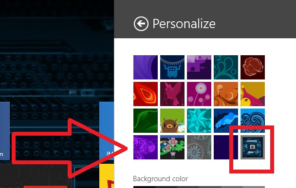 Als je besturingssysteem dit niet automatisch bij het upgraden van Windows 8 gedaan heeft, kun je de startschermachtergrond instellen door op het startscherm de charm bar te openen, naar Settings > Personalize te gaan en je desktopachtergrond uit de lijst met beschikbare achtergronden te kiezen.