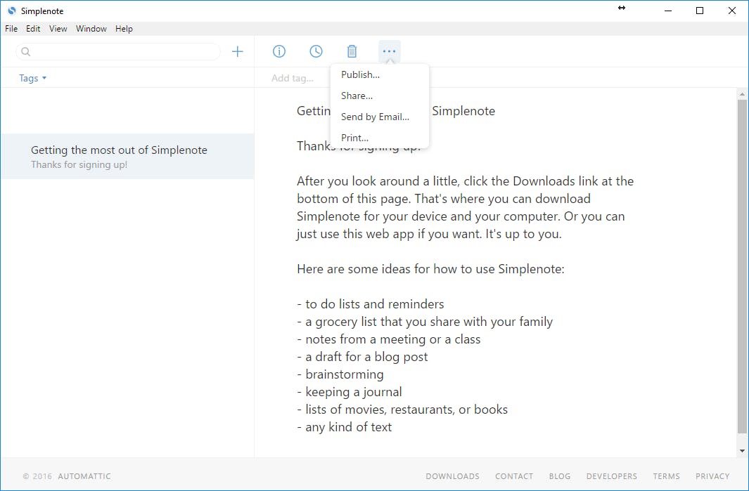 Is ook Google Keep je nog te uitgebreid en wil je echt gewoon alleen maar een manier hebben om eenvoudig notities vast te leggen en te synchroniseren op verschillende platformen, dan is Simplenote voor jou gemaakt. Het programma biedt vrijwel geen extra functies en dat is dan ook z’n kracht. Geen checklists, geen genummerde lijsten, puur tekst, maar wél met de mogelijkheid tot wat opmaak. Orde in de chaos kun je scheppen door tags toe te voegen aan je notities en door de zoekfunctie te gebruiken, maar uitgebreider dan dat is de app ook niet. Ook Simplenote is volledig gratis.