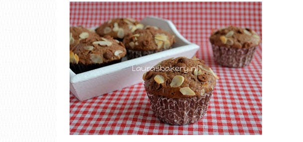 Sorry, we blijven nog even bij Laura’s Bakery, simpelweg omdat haar recepten rechttoe rechtaan zijn en tot nu toe bij ons altijd tot het gewenste resultaat hebben geleid. Als je eens wat anders op tafel wilt zetten, probeer dan eens deze goddelijke speculaasmuffins. Lekker omdat het niet zomaar een hap gerezen speculaasdeeg is, maar ze daadwerkelijk een bite hebben, en ook nog eens versierd zijn met amandelsnippers. Daar moet je dan natuurlijk wel van houden.