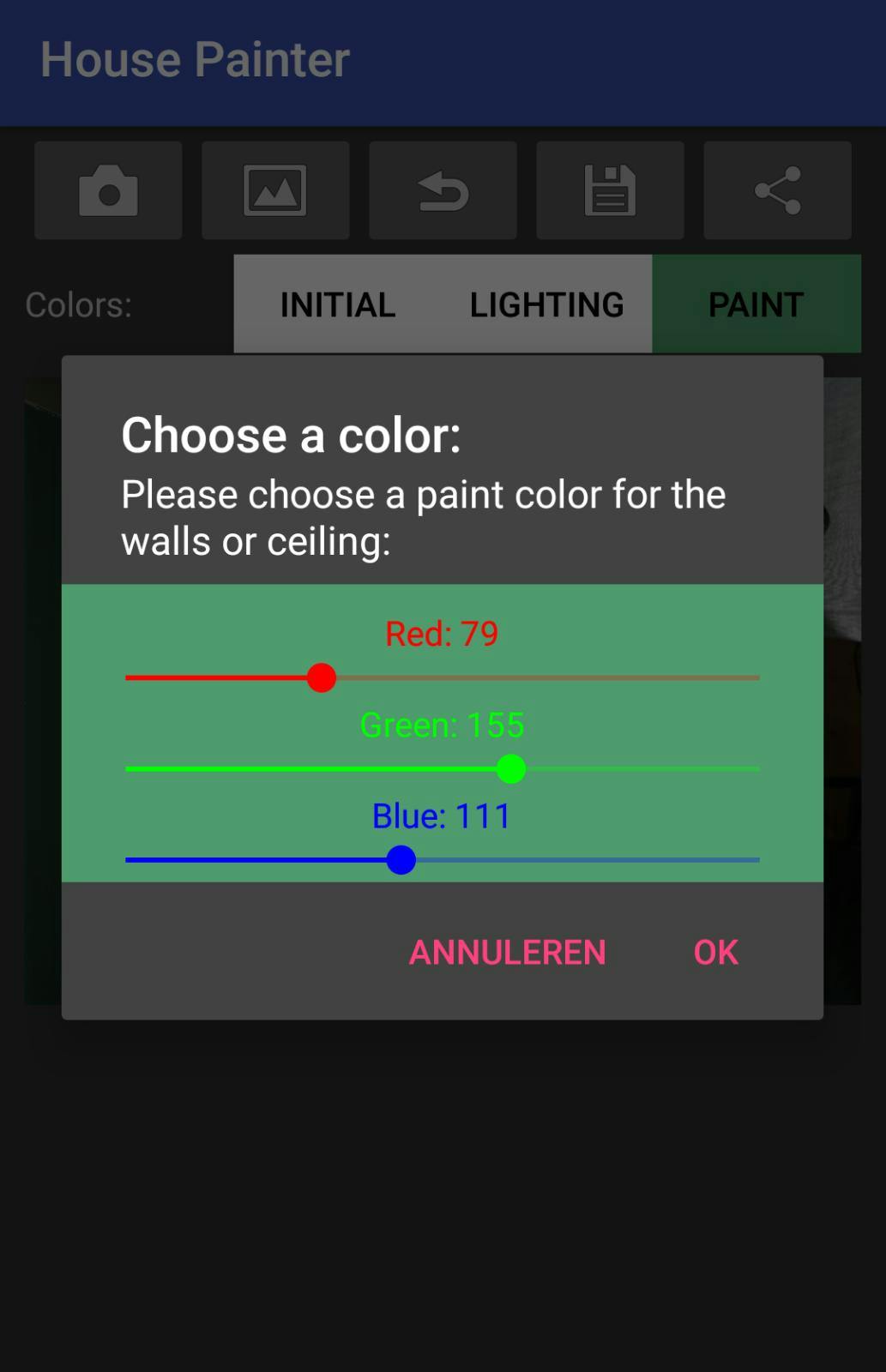 Met HousePainter kun je kleuren op je muren testen. Maak een foto van de muur die je graag wil verven en stel een nieuwe kleurencombinatie in.