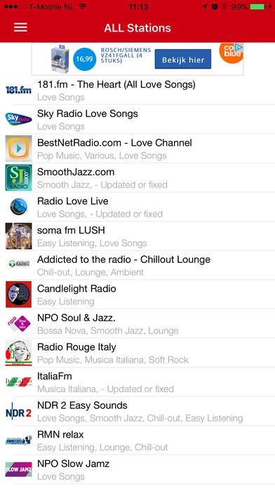 Ben jij nog niet helemaal in de stemming voor Valentijnsdag? De app Valentine Radio brengt hier verandering in. Valentine Radio is een app die radiozenders voor je heeft verzameld waar je romantische muziek kunt beluisteren die je in de juiste stemming voor Valentijnsdag brengt. De app bevat in totaal 40 verschillende online radiozenders, waardoor je altijd wel een zender kunt vinden die je bevalt. De app is voorzien van een simpele en minimalistische interface, waardoor verdwalen in de app eigenlijk onmogelijk is.