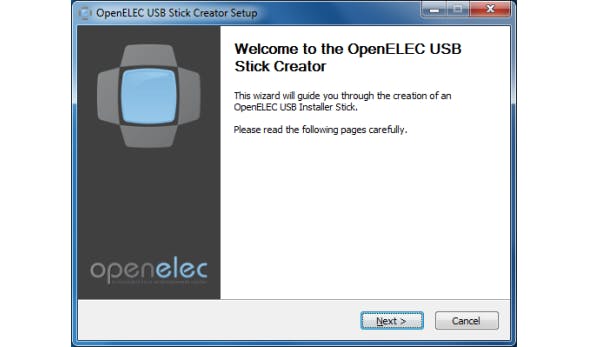 Het installatieprogramma van OpenELEC moet je met het meegeleverde programma op een usb-stick schrijven.