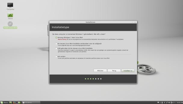 Linux Mint laat zich heel gemakkelijk installeren en stelt zelfs een dualbootconfiguratie voor indien nodig.