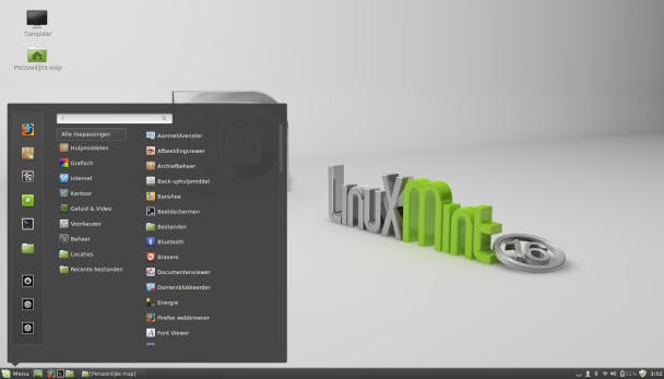 Het hoofdmenu van Linux Mint Cinnamon geeft je toegang tot alle geïnstalleerde programma's.