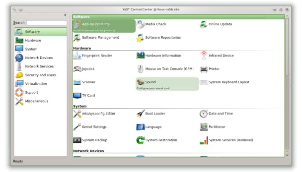 YaST verzamelt alle systeeminstellingen.