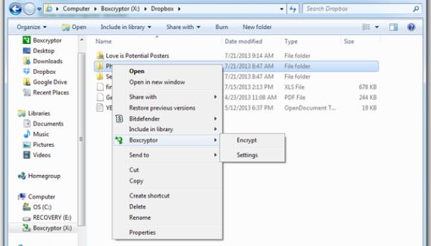 Door de beveiligingsvalkuilen van Dropbox aarzelen sommige gebruikers om er bestanden mee op te slaan - met name als het om gevoelige documenten gaat. BoxCryptor versleutelt automatisch bestanden voordat ze naar Dropbox gestuurd worden. Het ondersteunt ook Box.net, Google Drive, en Microsoft SkyDrive.