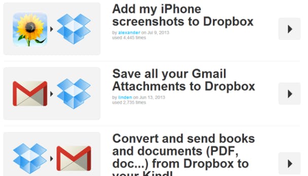 Met IFTTT kun je "recepten" creëren voor kanalen zoals Facebook, Evernote, e-mail, en natuurlijk Dropbox. Momenteel zijn er op IFTTT 68 kanalen beschikbaar. Een recept maak je aan door het eerste kanaal te selecteren, waarna je kunt kiezen uit een lijst met mogelijke triggers. Daarna kun je bepalen wat IFTTT moet doen als deze trigger zich voordoet. Zo kun je bijvoorbeeld alle Gmail bijlagen automatisch naar Dropbox laten uploaden, of een SMS-bericht ontvangen wanneer er een foto in je Dropbox wordt opgeslagen.