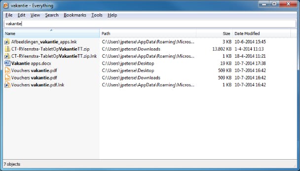 De zoekfunctie van Windows is handig om programma's op te zoeken en te starten. Everything graaft een stuk dieper en is in staat om erg snel (zelfs individuele) bestanden op te zoeken.